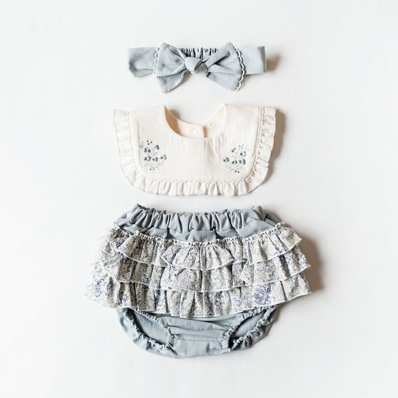 | 素材 | 【スタイ表地】綿100% レーヨン5% 【スタイ裏地】綿78% ポリエステル22% 【ブルマ】綿100% 【ヘアバンド】綿100% |