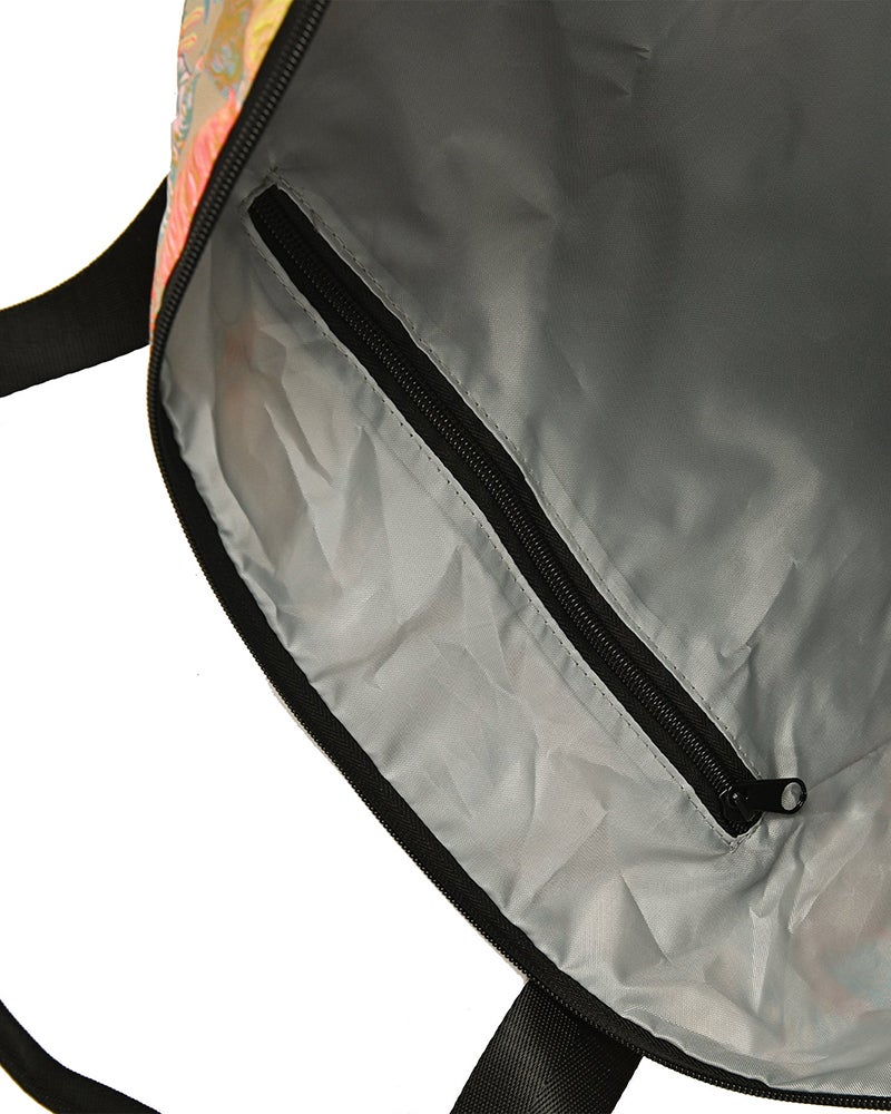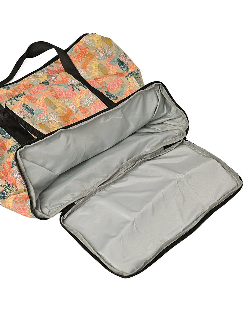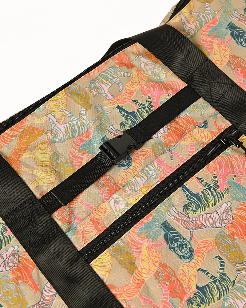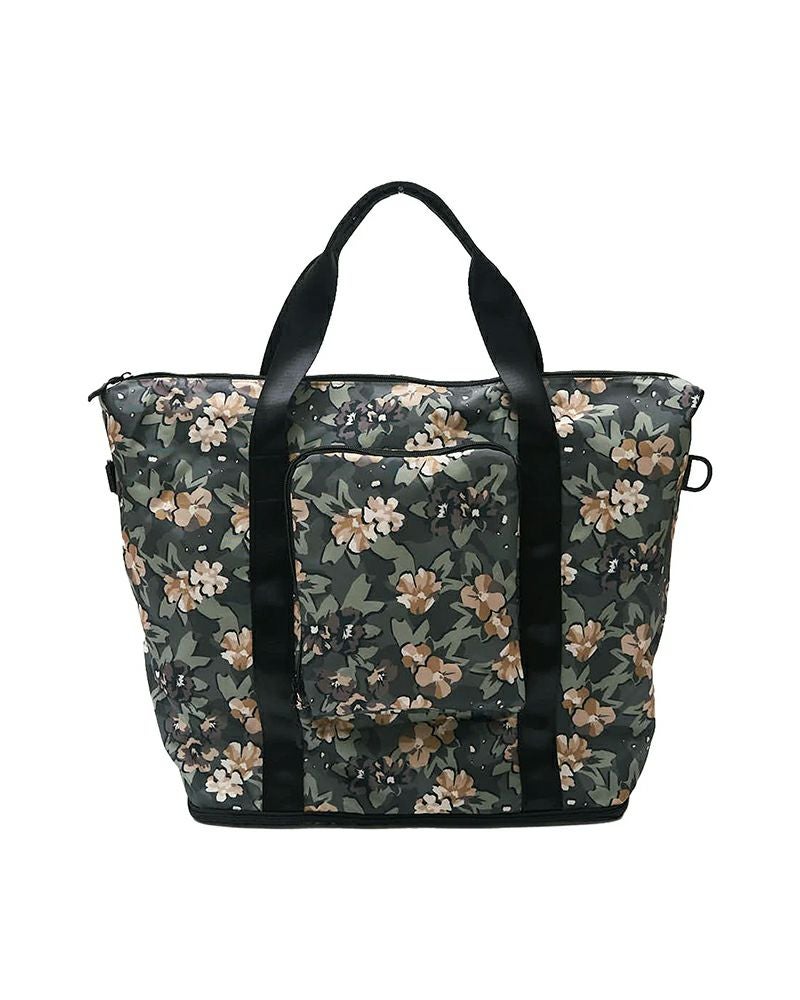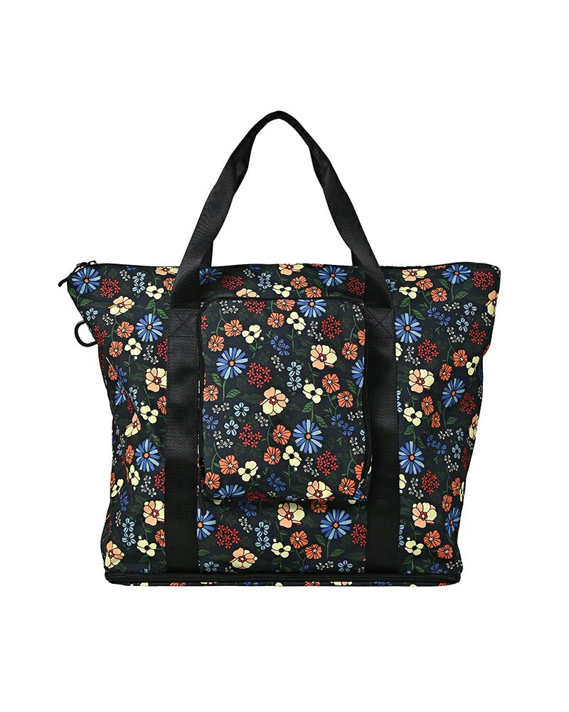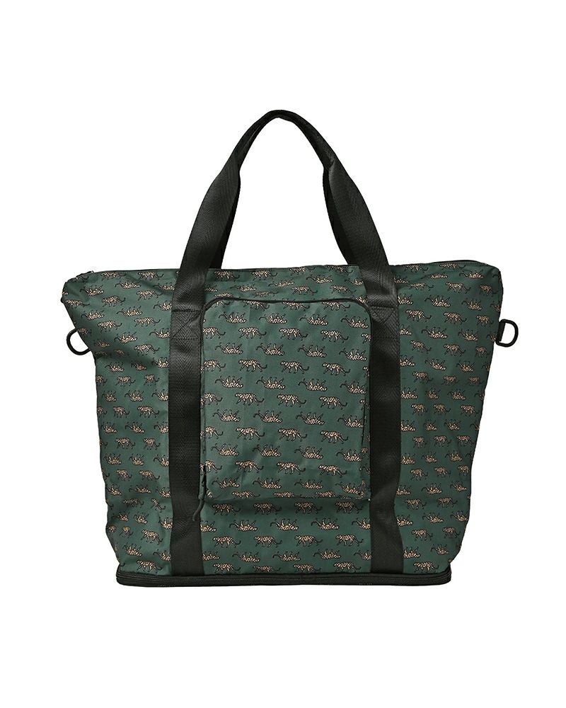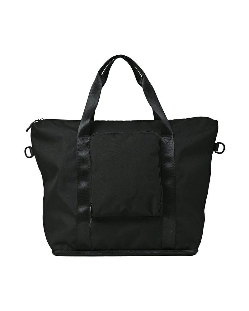 キャリーケースの上に載せられる大容量トートバッグ。300Dのポリエステル生地を使用し、丈夫ながらも軽量でパッカブル収納が可能です。