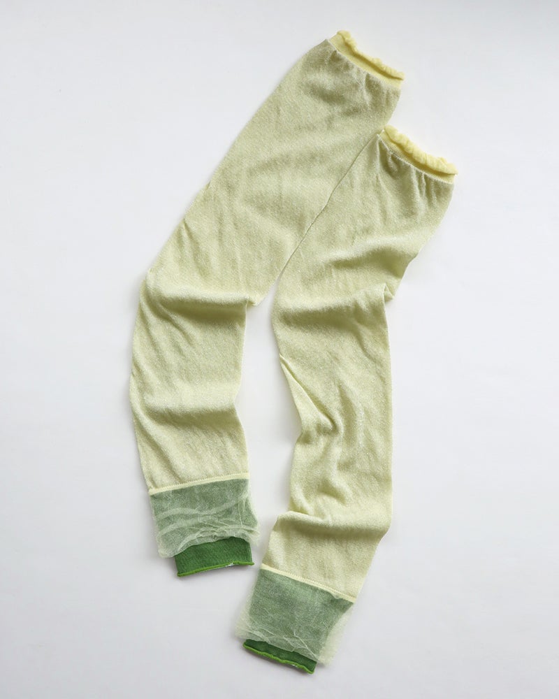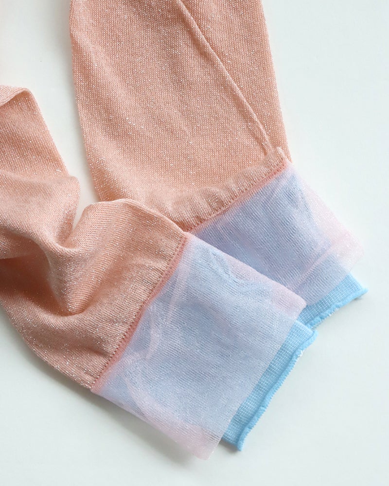 ふわっと軽やかなチュールのフリルが、まるでバレリーナのように優雅なアームカバー。カラフルな色使いとほんのり甘さのあるデザインで、お洋服に合わせたコーディネートを彩ります。