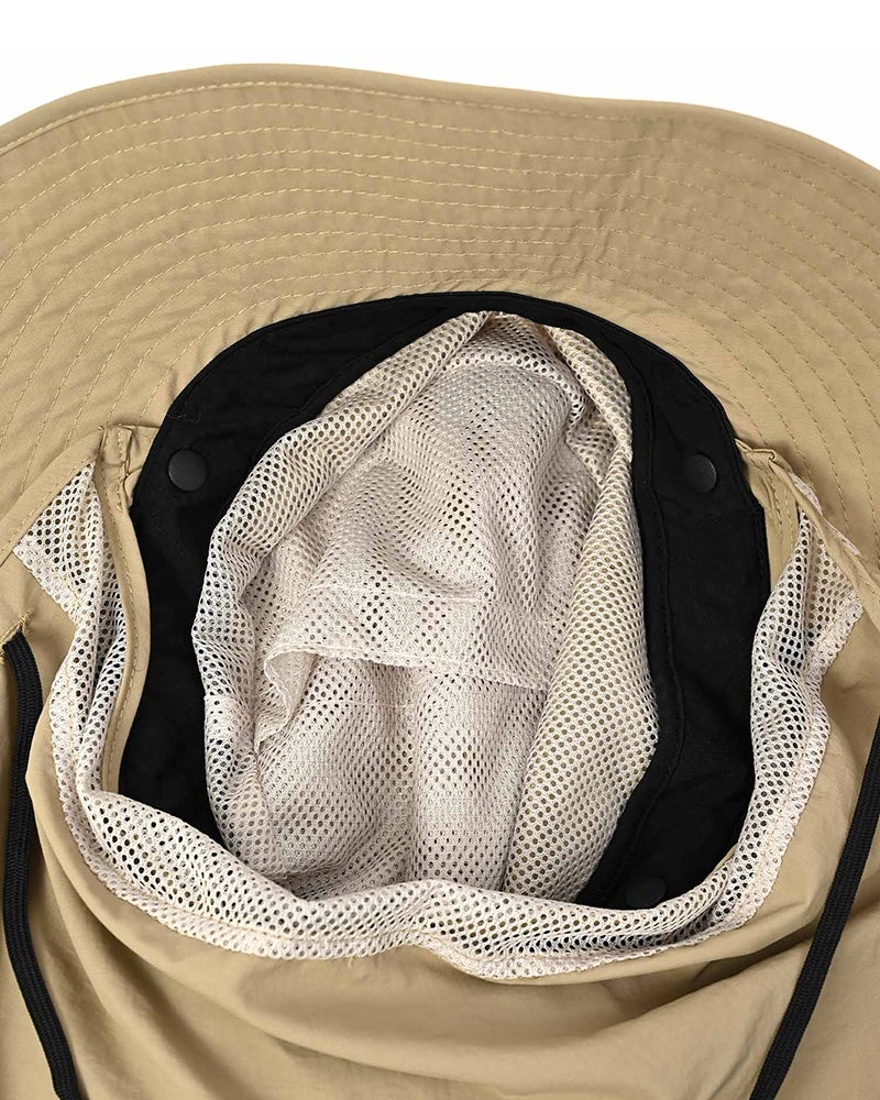 裏面にはメッシュ素材を使用し、風通しも抜群。首を日焼けから守るサンシェード部分は取り外し可能なのも嬉しいポイントです。