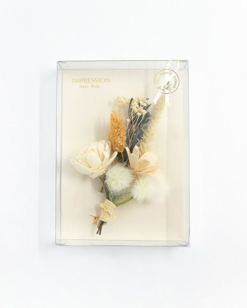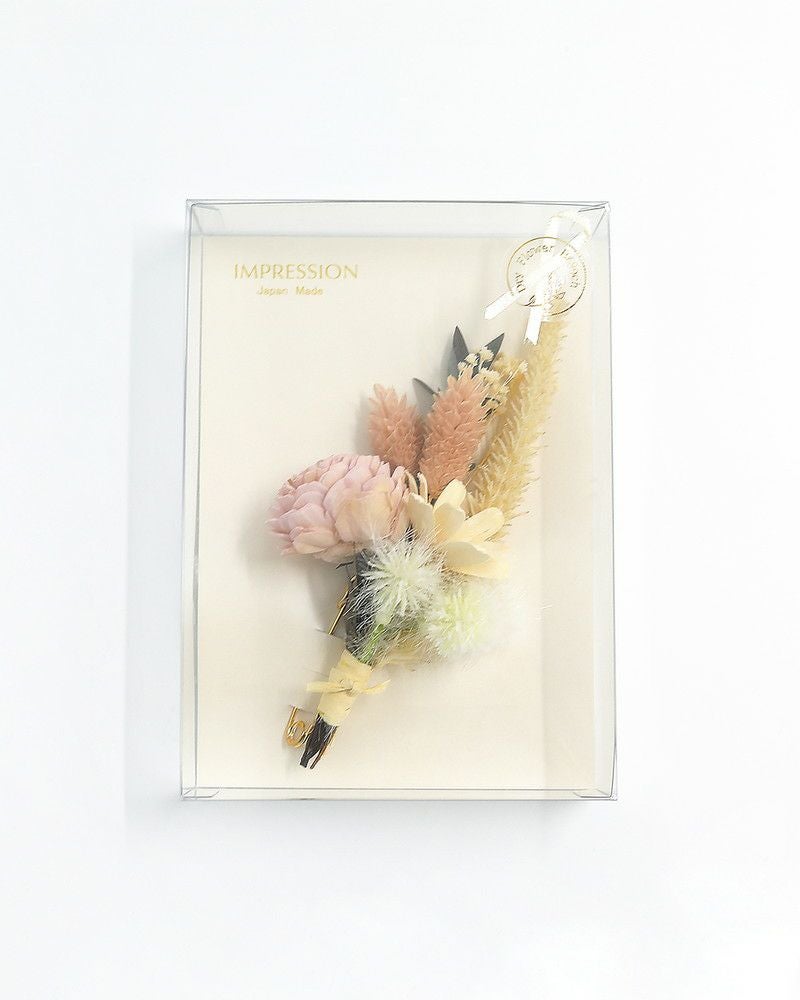 | 使用上の注意 | 天然素材の為、1点1点色合い等が異なります。 また繊細な作りになっておりますのでお取扱いには十分にご注意ください。 高温多湿・直射日光・乾燥した場所を避けて保管をお願い致します。 ドライフラワーの繊維が衣服に付着する場合がございます。色の濃い衣服の場合繊維が目立ちやすい為、着用の際はご注意ください。 |