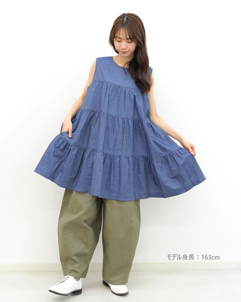 5. 【10%OFF】[GYMPHLEX]インディゴツイルティアードチュニック/ジムフレックス