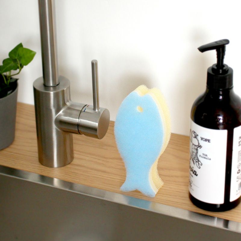 かわいい&機能的なおさかな型のスポンジです。泡立ち、泡持ちが良く、水切れ・耐久性に優れた3層構造。持ちやすさ、コップの底にもしっかり届くフォルムが人気の秘訣です。ご挨拶などのギフトとしてもおすすめ。