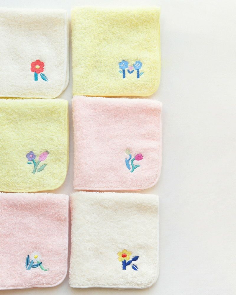 お花モチーフの刺繍デザイン…ではありません。実はさりげない【イニシャルモチーフ】のオリジナルハンカチが登場しました!