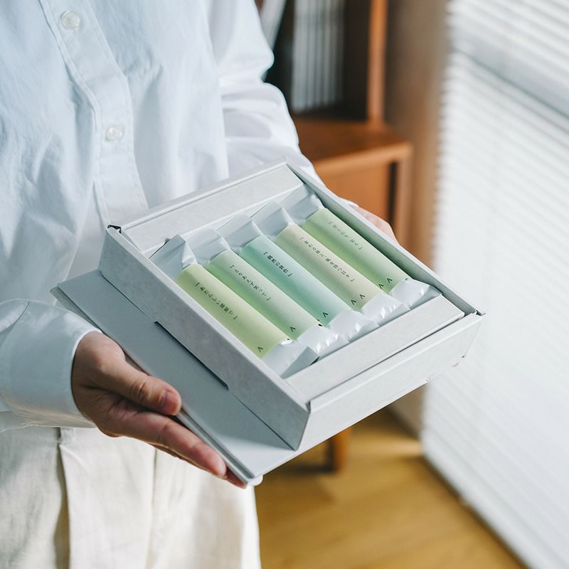 ギフトボックスには、テーマごとに入浴剤を包む紙の言葉が異なります。