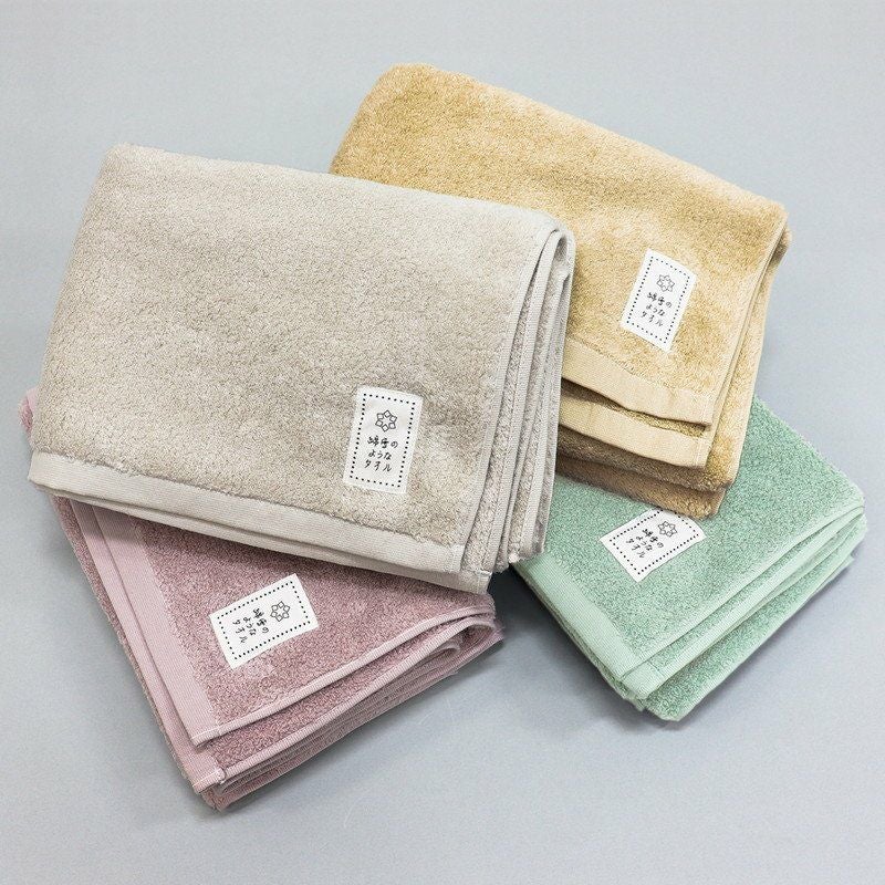 ふわっとやわらかな、まるで綿雪のように軽いふわふわのタオル。すき間が多く空気を含みやすい無撚糸で作られており、吸水性も高く通気性が良いのがポイントです。