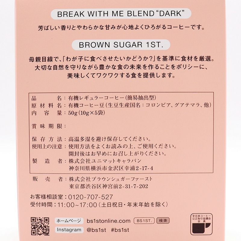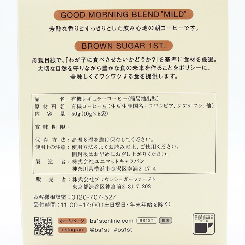 [BROWN SUGER 1ST]オーガニックドリップコーヒー 5包/ブラウンシュガーファースト