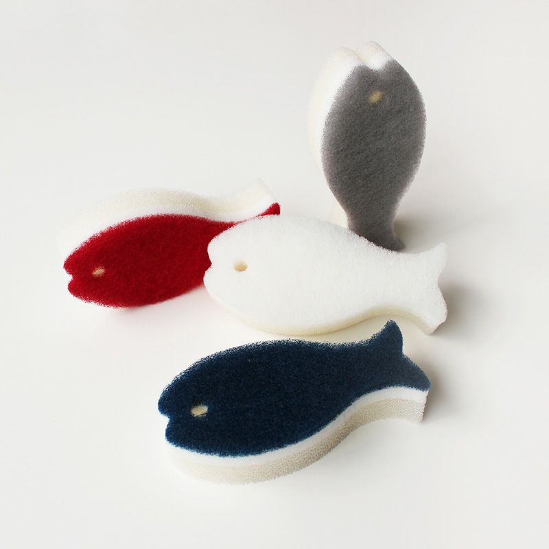 かわいい&機能的なおさかな型のスポンジです。泡立ち、泡持ちが良く、水切れ・耐久性に優れた3層構造。持ちやすさ、コップの底にもしっかり届くフォルムが人気の秘訣です。ご挨拶などのギフトとしてもおすすめ。