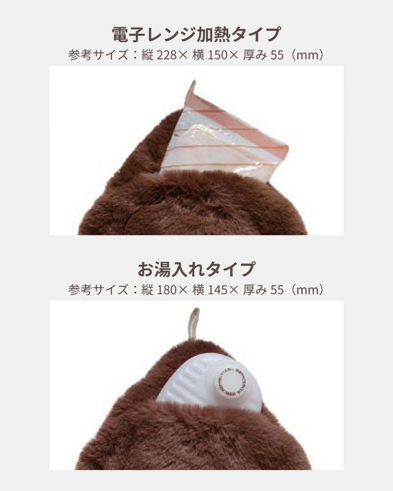 | 参考 | 【湯たんぽ 参考サイズ】 電子レンジ加熱タイプ:W150×D55×H228(mm) お湯入れタイプ:W145×D55×H180(mm) ※カバーのみの販売です。 湯たんぽ本体は、一般的に市販されているSサイズが対応しています。 |