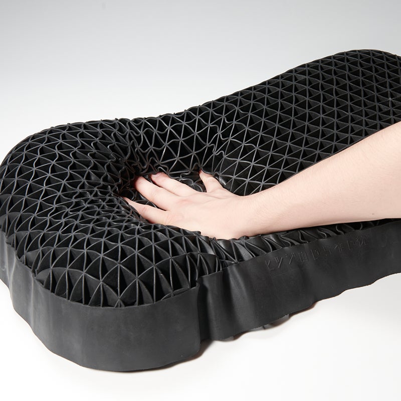 ヒツジのいらない枕では、2種類の三角格子構造TPEを重ねることで、頭を支えながら効率的に熱と湿気を分散する通気設計になっています。