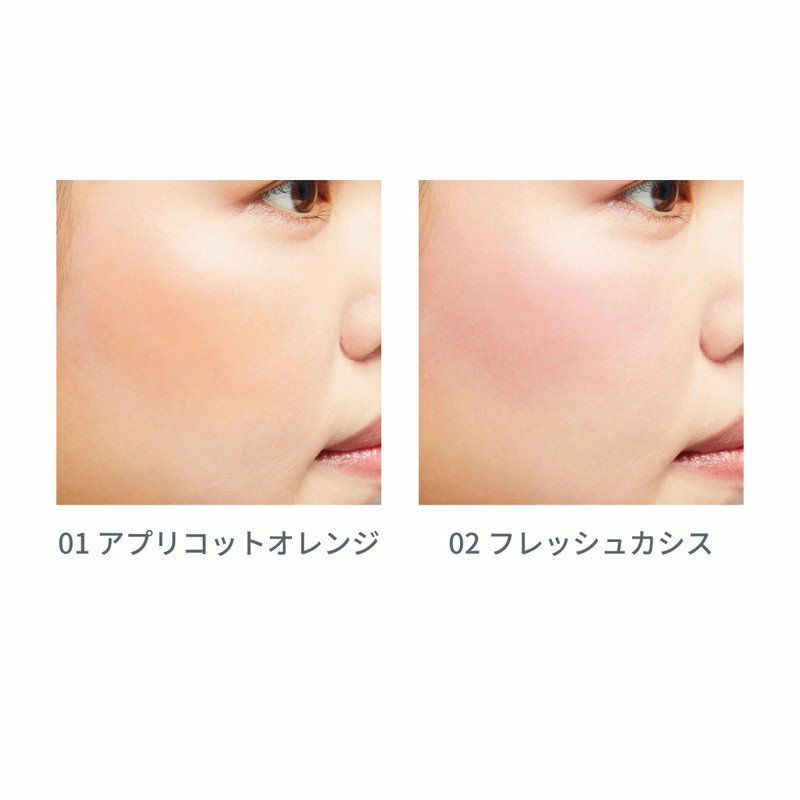 | カラー | 【01 アプリコットオレンジ】 大人の血色感を演出し抜け感が出せるアプリコットカラー 【02 フレッシュカシス】 お肌に透明感と華やかな上品さを与えるカシスピンク |