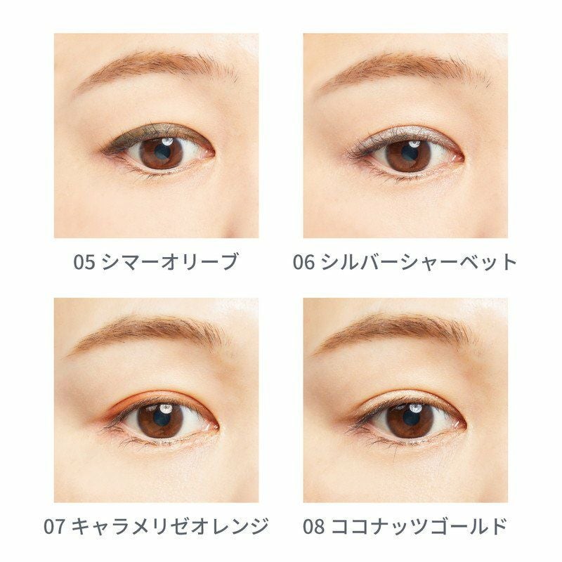 | カラー | 【01 シャンパンピーチ】 肌にのせると透明感が出るシアーなピンクベージュ 【02 ジュエリーカシス】 青みを含むブラウンレッドで深みのある目もとに 【03 ジューシーパイン】 光を引き立てるゴールドパールの輝きが立体感のある華やかな目もとへ 【04 カクテルショコラ】 引き締めからグラデーションまで叶えるブラウンベースで磨き上げたようなツヤめきを 【05 シマーオリーブ】 深みのあるディープグリーンと透け感のあるパールの輝きで華やかな印象へ 【06 シルバーシャーベット】 上品な明るさを演出するシルバーは光を宿し澄み渡る優艶な目もとに 【07 キャラメリゼオレンジ】 深みオレンジとゴールドパールで柔らかく優しい印象に 【08 ココナッツゴールド】 どんな肌色にもなじむベージュカラーでうるみのある上品なきらめきを |