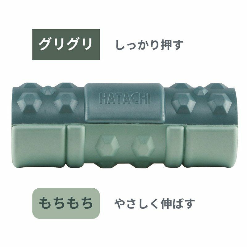 | 使用方法 | 異なる硬さで部位にあわせて選べる2way設計です。 ■グリグリ面で「しっかり押す」…ふともも、お尻、足裏など ■もちもち面で「やさしく伸ばす」…首、背中、腰、ふくらはぎなど |