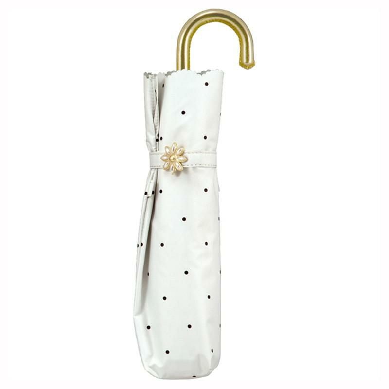 ドット柄とスカラップのフチがガーリーな折りたたみ日傘。