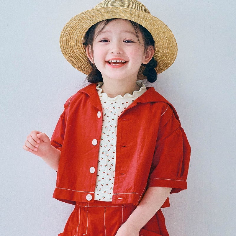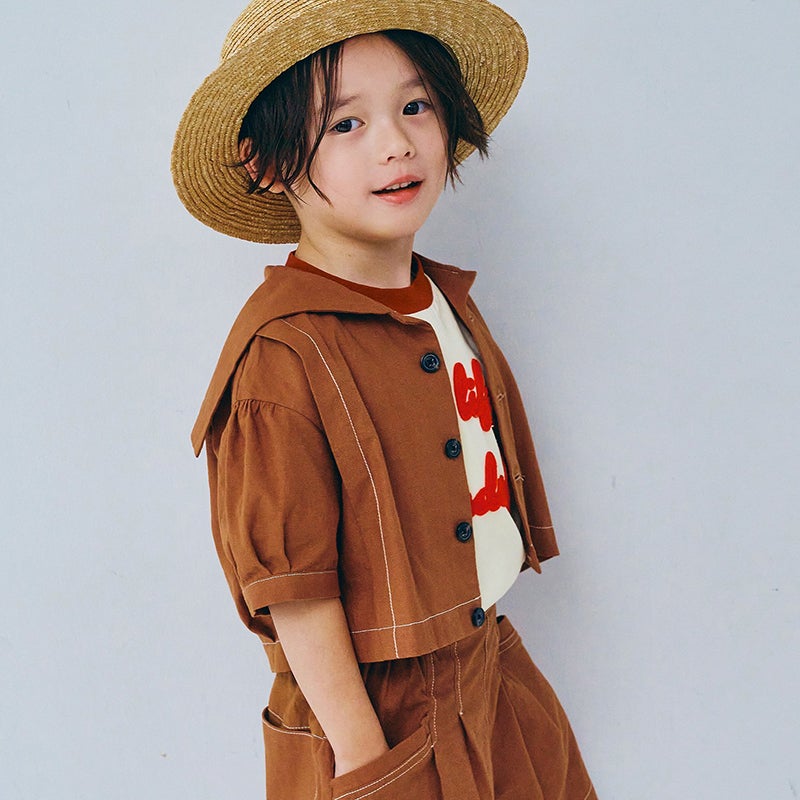 [p.premier]セーラー衿の半袖クロップドシャツ キッズ〈WEB限定 130-140cm〉/ピードットプルミエ