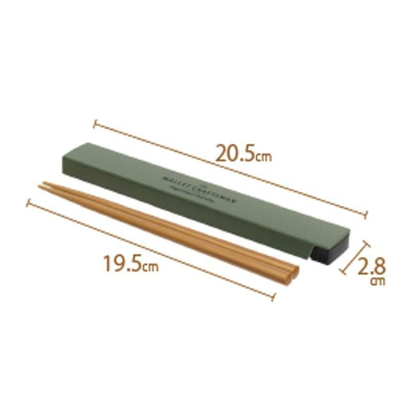 シンプルで使いやすい箸とケースのセットで、木箸は大きな手でも扱いやすい全長19.5cm。