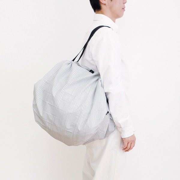 シュパッと引っ張るだけの簡単収納のショッピングバッグ。大容量Lサイズは家族分の食料を買い込む時や、お友達とのパーティー準備への買い出しなど、たっぷり運べる安心サイズです。