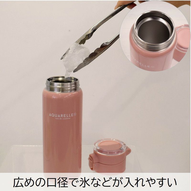 持ち運びに便利なクリアハンドルが付いた、見た目も新しいパステルカラーのステンレスボトル。ワンプッシュで簡単に開き、お子さまも使いやすいデザインです。フタを外せば口径も広く、氷や飲み物が入れやすくなっています。