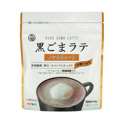 黒ごまと国産大豆きなこが香ばしく香ります。人工甘味料・香料不使用、ノンカフェインでからだもうれしい黒ごまラテ。牛乳、豆乳に溶かすだけで、ホットでもアイスでもいつでもおいしく飲めます。食物繊維、鉄分、カルシウム豊富で普段不足しがちな栄養をおいしく摂取できます。