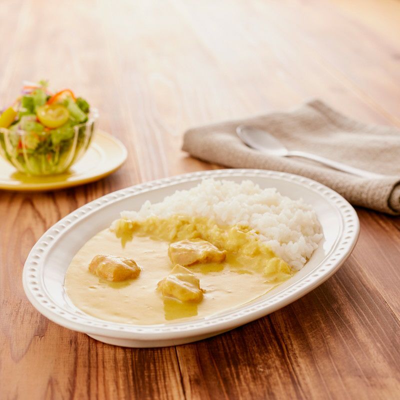 | 原材料 | 鶏肉(タイ)、炒めたまねぎ、クリーム、ココナッツミルクパウダー、レモンジュース(ストレート)、りんごピューレー、砂糖、なたね油、小麦粉、チキン風味調味料、乾燥マッシュポテト、食塩、カレー粉、レモン皮、にんにく、でん粉、おろししょうが、香辛料 |