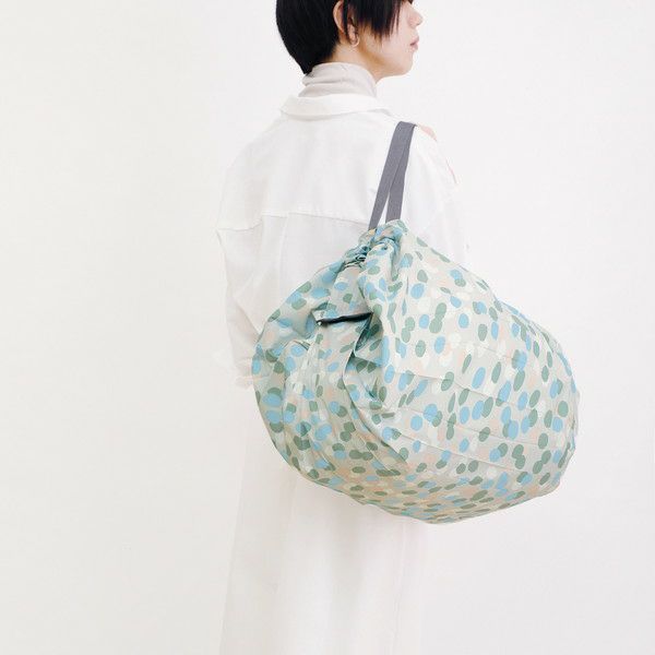 シュパッと引っ張るだけの簡単収納のショッピングバッグ。大容量Lサイズは家族分の食料を買い込む時や、お友達とのパーティー準備への買い出しなど、たっぷり運べる安心サイズです。