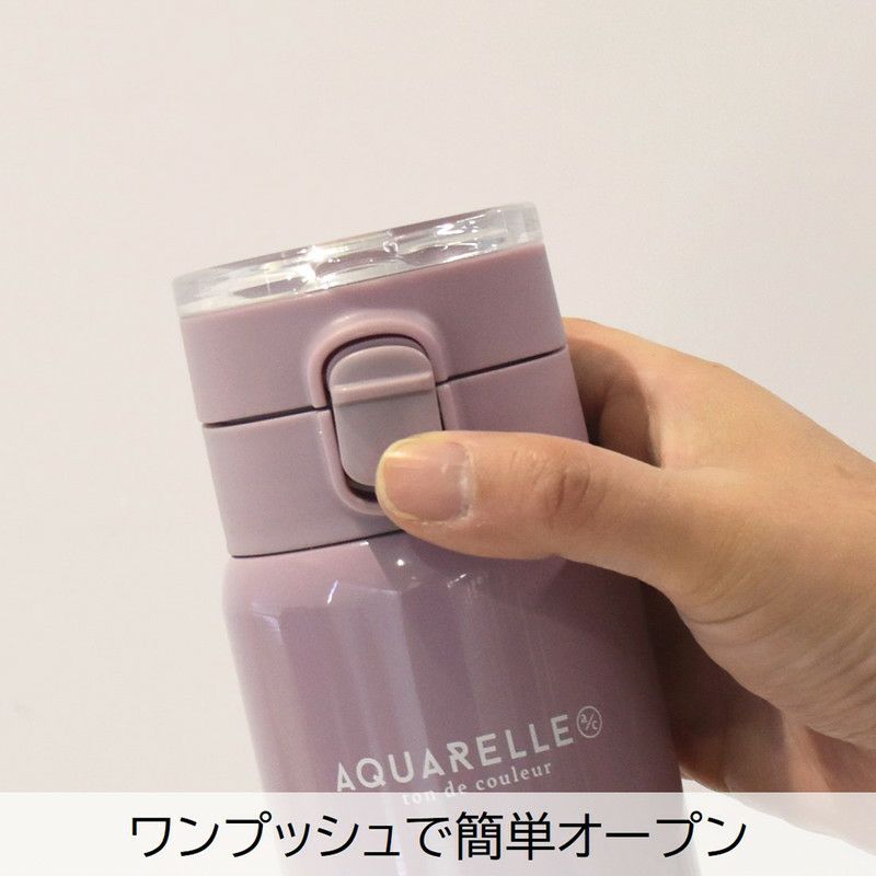 持ち運びに便利なクリアハンドルが付いた、見た目も新しいパステルカラーのステンレスボトル。ワンプッシュで簡単に開き、お子さまも使いやすいデザインです。フタを外せば口径も広く、氷や飲み物が入れやすくなっています。