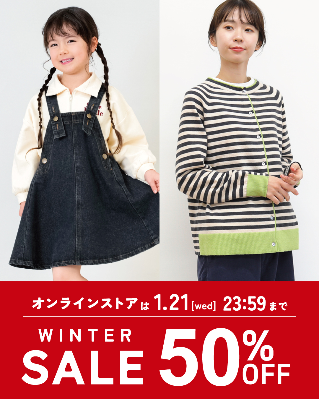 オンラインストアでも冬物レディースウェア・冬物ベビー&キッズウェア50%OFFセール開催☆