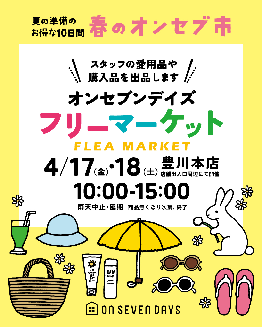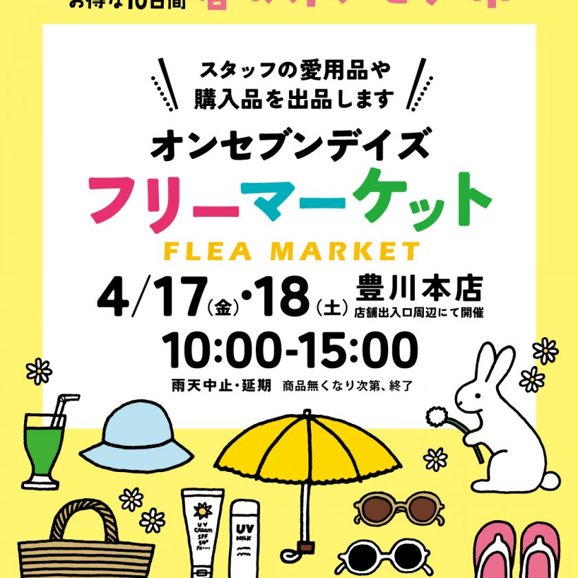 オンセブンデイズ豊川本店にてフリーマーケットを開催します。